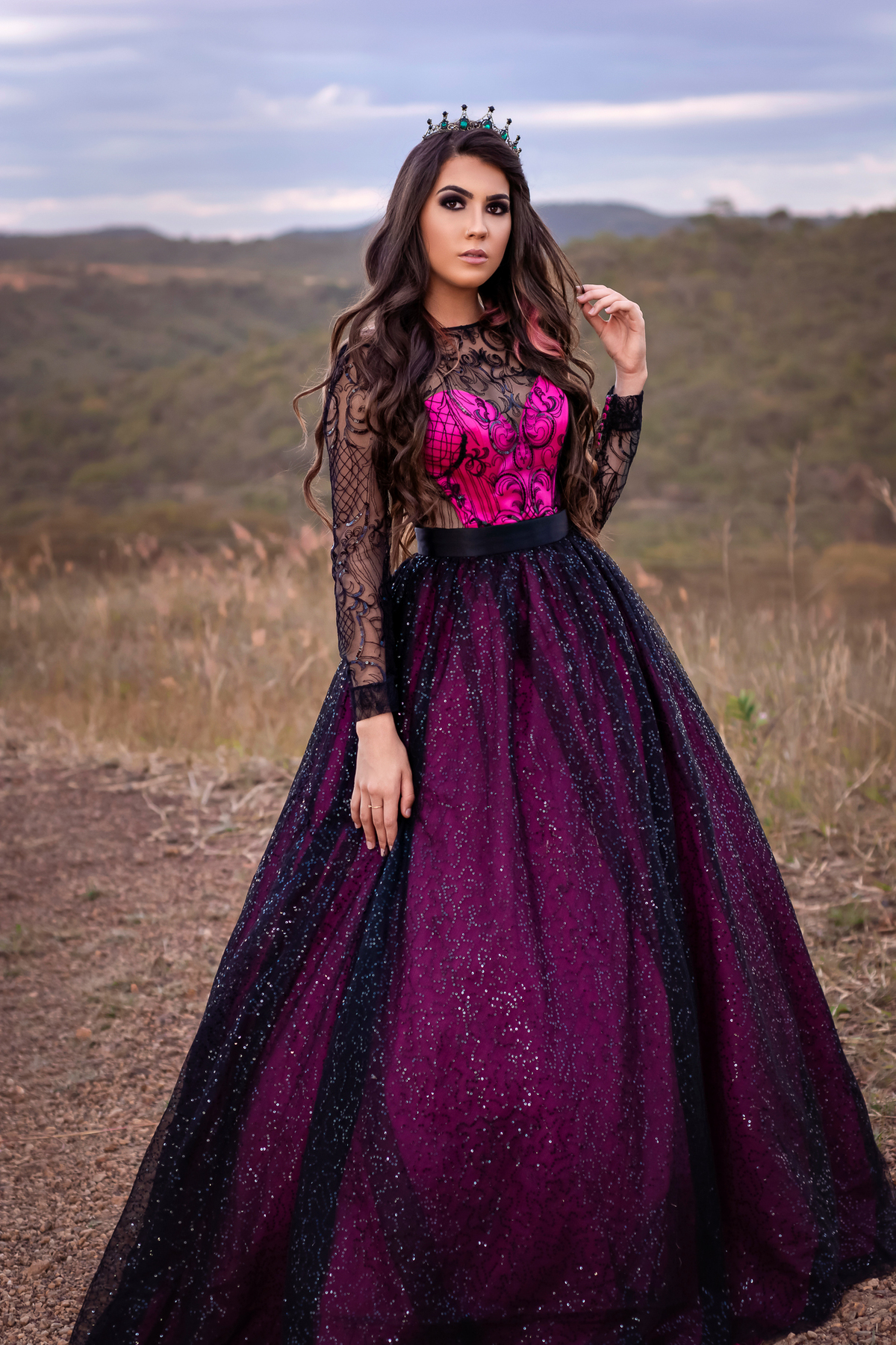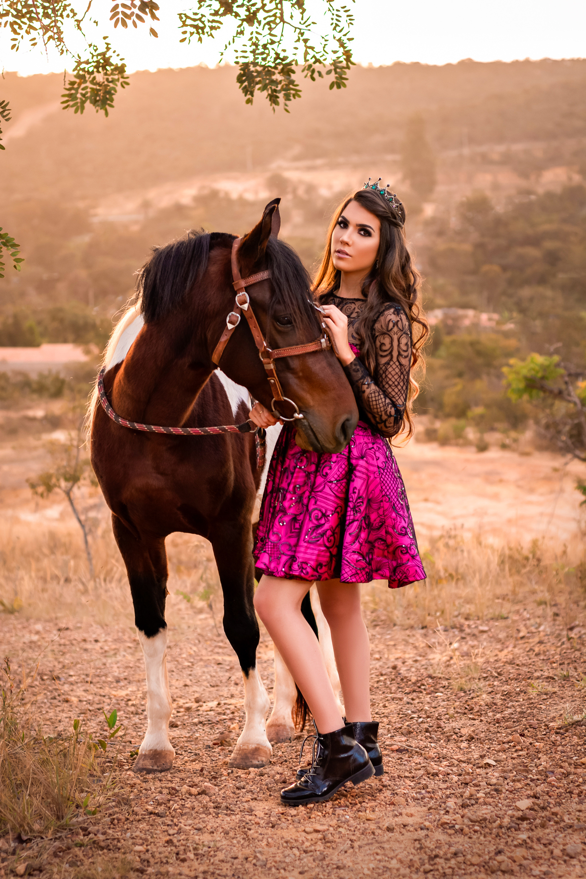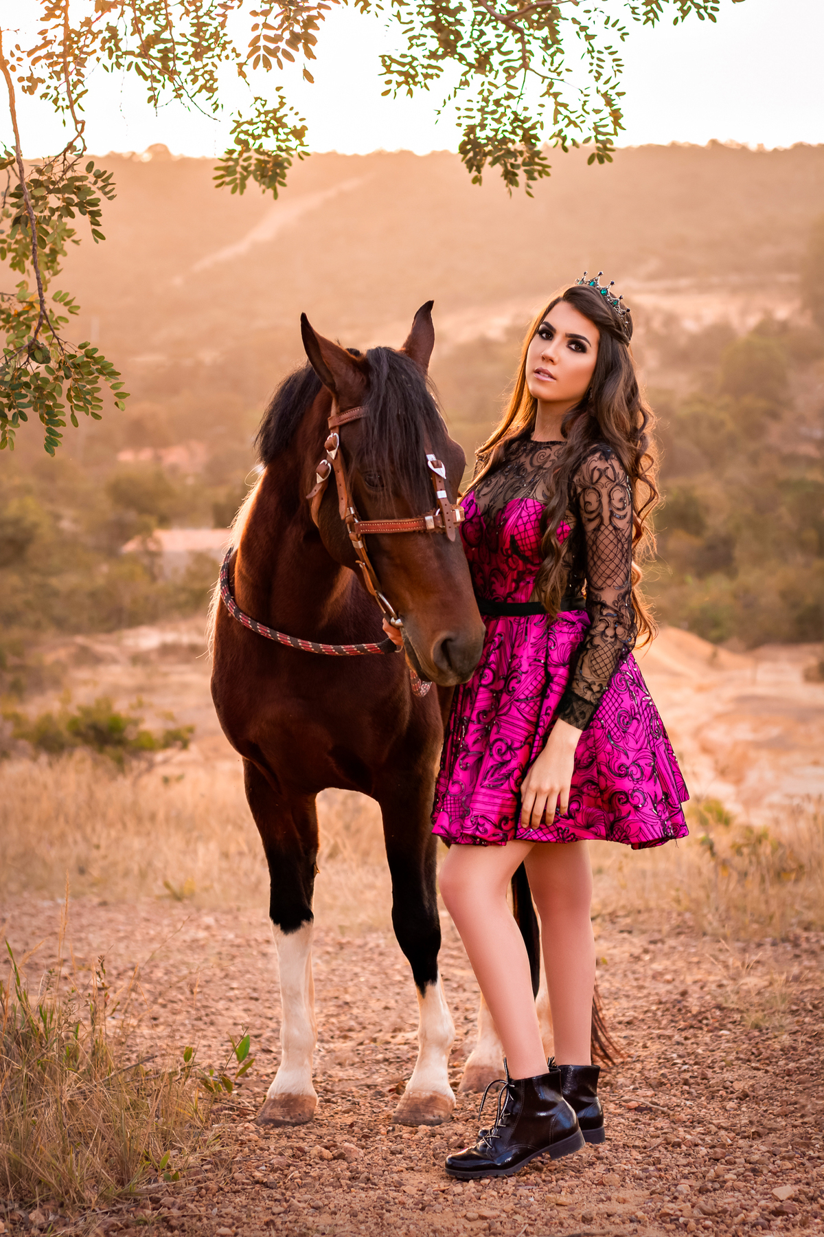 Entre o verde do campo, o brilho do vestido e a presença do cavalo, ela viveu um momento que vai ficar guardado para sempre.