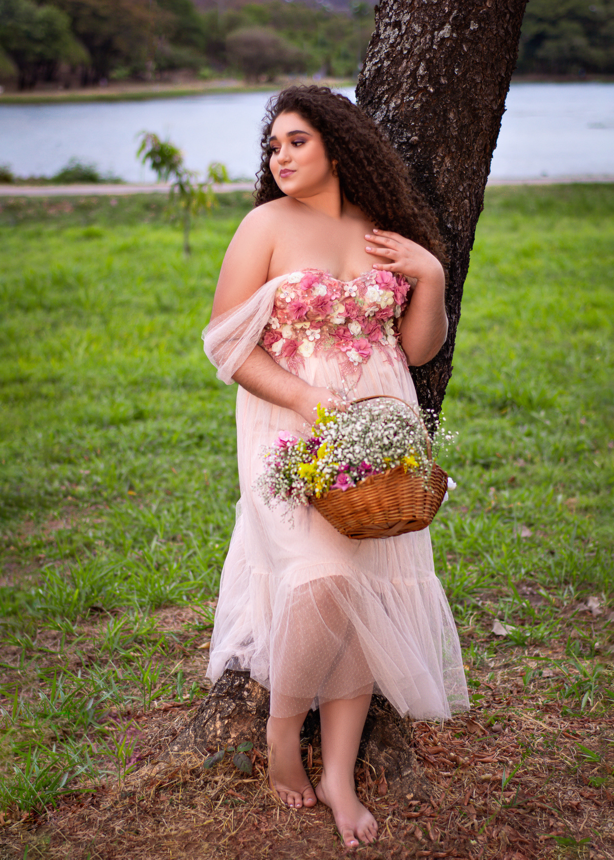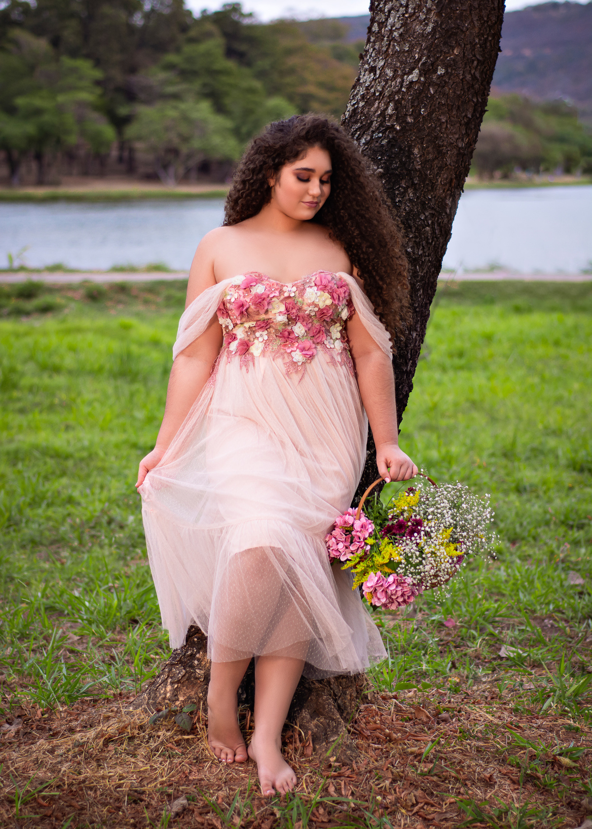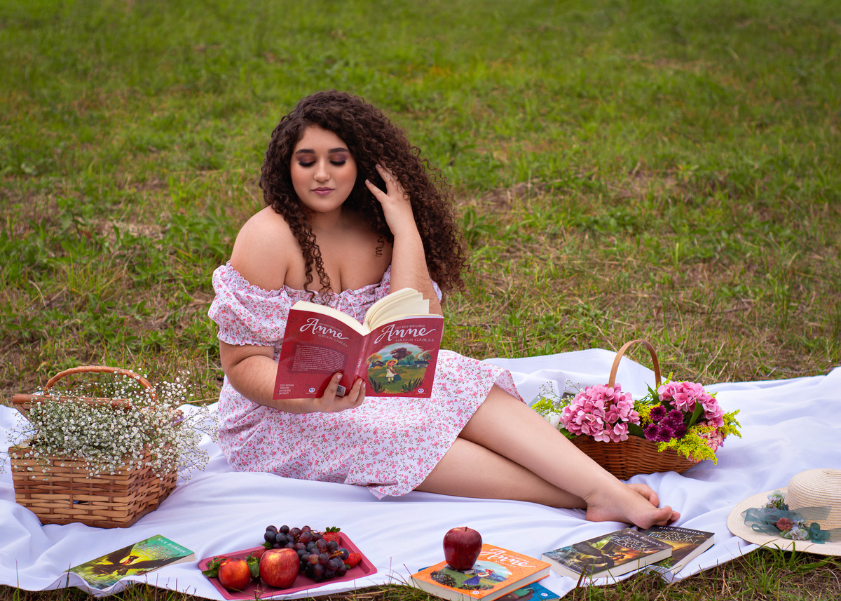 Quando conversamos ela disse ser apaixonada por livros, séries.... E é claro que eles teriam que fazer parte do ensaio. O ensaio foi dividido em dois momentos. Primeiro fizemos o ensaio Fine art que ficou divinamente lindo com muitas flores e livros. Depois fizemos fotos externas em um estilo mais romântico inspirado na "Anne with an E". Para completar, tivemos a participação especial da sua mascote Cindy que arrasou modelando tbm. Duas princesas :) Sou suspeita em falar, mas estou muito apaixonada neste ensaio!